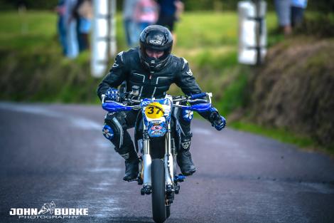 The biggest entry of the meeting was the C class or Supersport 600s effectively. There was also great blend of youth and experience with Garry "Fox" Keohane showing some of the younger riders a thing or two with a P5 in the first race. All eyes were on Banagher's proudest export Keelim Ryan as he pitted all his road racing experience against the up-and-coming star in Anthony O'Carroll. There was a good 400cc entry in CA Class with Cian O'Brien, Roy Werst, Simon Callanan and Jamie Carey all keeping some of the 600cc riders honest. Class D produced the overall winner in 2019 and Derek Wilson was back again to try and retain the Frank Conlon memorial trophy. Opposition for the coveted Class D came in many forms including the local men David Hayes, Derby O'Donovan, brothers in law Brendan Harte and Derry Hourihan and not forgetting the fastest man in the World on the back wheel over a kilometre Cork's Ted Brady.